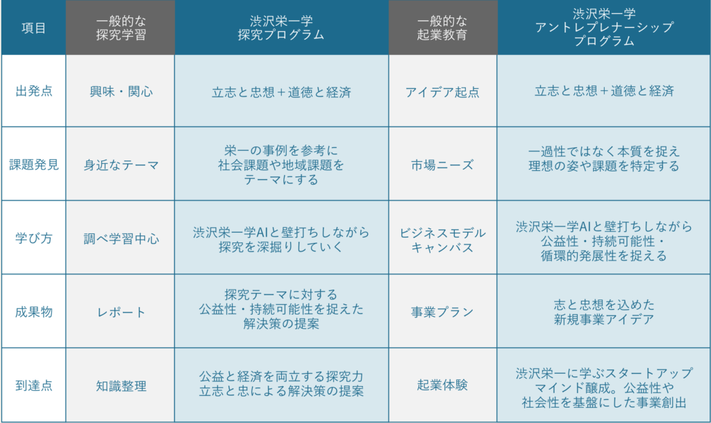 探究・アントレプレナーシップそれぞれで体系的にプログラム化